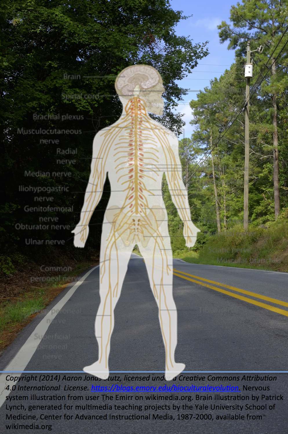 So let’s try to maintain our joint introspective and sensory focus on a couple of questions. How do awareness and introspective attention specifically shape human relationships to our own bodies and our surroundings? How have those complex relationships–that is, those interface environments between mind and the world–shaped the evolution of our capacity to think through stories?