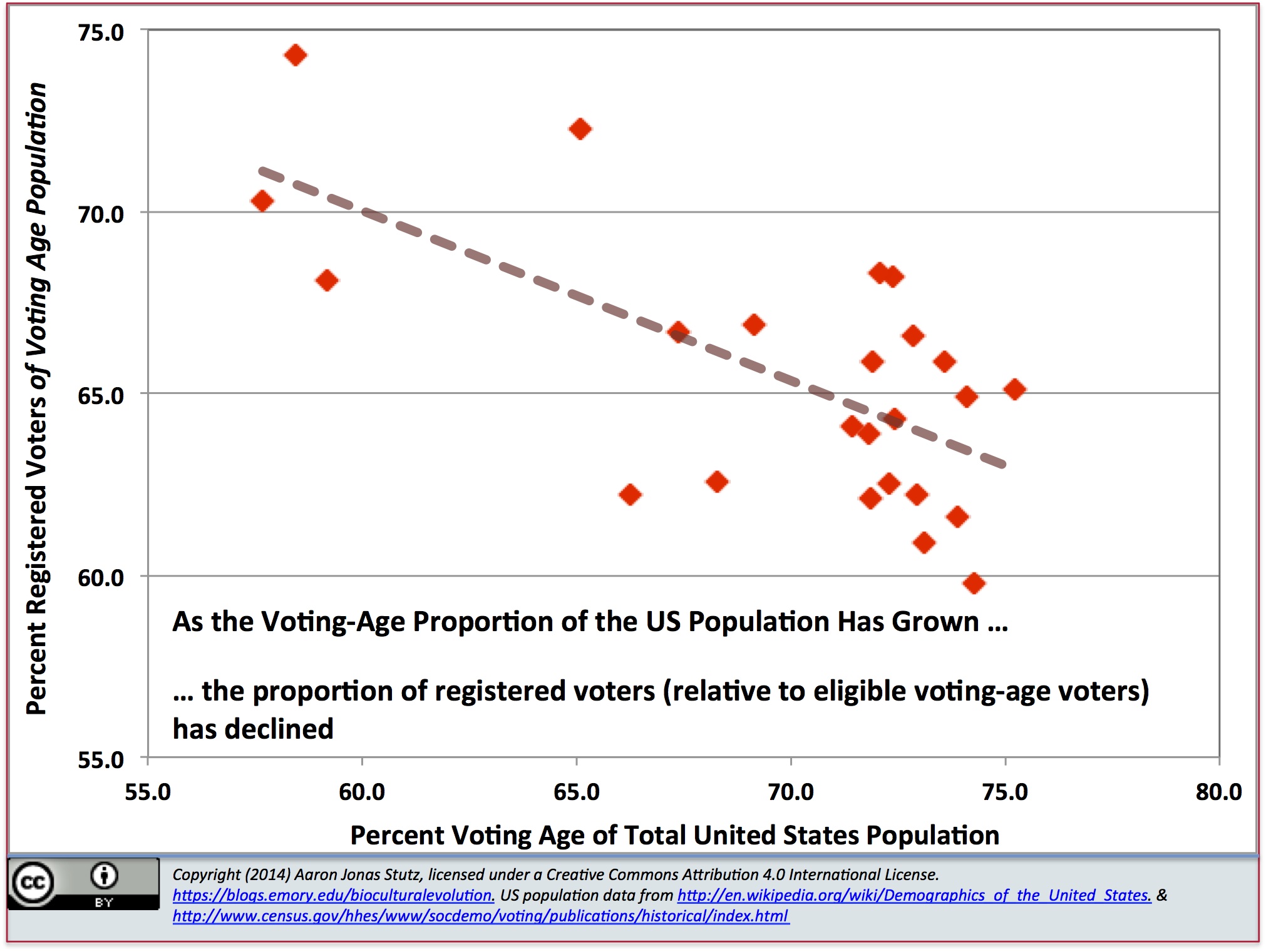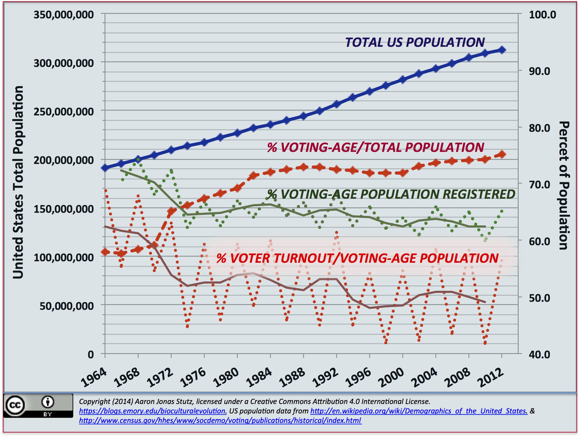 It is surprisingly clear that the United States electorate is still disproportionately dominated by older, not-so-financially-strapped citizens. The composition of the swing voting groups may fluctuate slightly in terms of racial, ethnic, gender, and age-cohort composition. But poorer people who are at best tenuously integrated into the mainstream financial system are massively, disproportionately over-represented among non-voters. Thirty-three percent of the voting-age population in the United States enjoys less than $30,000/year in family income. But this low-income group comprises nearly half of the non-voters. There seems to be some incompletely understood dynamics in who drops out of the electorate. But it’s about the cultural and political dynamics of economic marginalization.