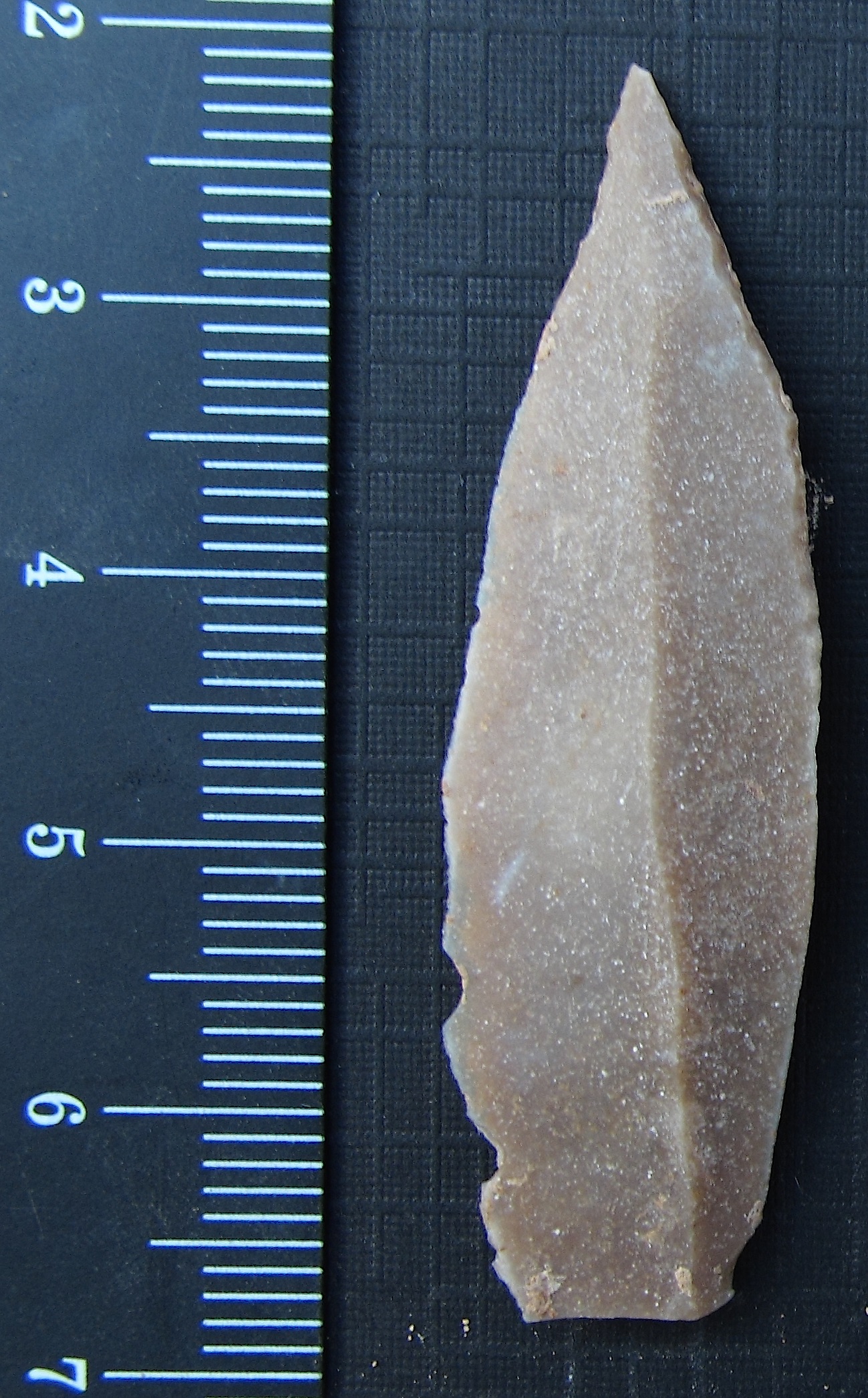 el-Wad point from the Early Upper Paleolithic site of Mughr el-Hamamah, Jordan (Stutz et al., in press). Photograph by Aaron Jonas Stutz CC-BY 2015.